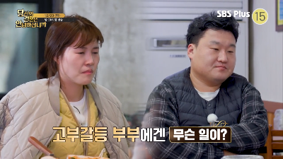 점점 깊어지는 마음의 골과 굳게 닫혀버린 마음의 문 둘은 다시 회복할 수 있을까 당결안4 매주 화요일 밤 10시 방송점점 깊어지는 마음의 골과 굳게 닫혀버린 마음의 문 둘은 다시 회복할 수 있을까 당결안4 매주 화요일 밤 10시 방송 좁혀지지 않는 단하와 정근의 입장 차이 이혼을 결심했던 이유는 당결안4 매주 화요일 밤 10시 방송 상처를 주는 자칼 대화법 부부의 대화에서 피해야 할 표현들이 다 나왔다 당결안4 매주 화요일 밤 10시 방송 불필요한 설명은 기린의 대화법으로 감정 표현을 해보는 정근 단하의 대답은 당결안4 매주 화요일 밤 10시 방송 나를 사랑해줘서 고마워 눈빛과 대화로 진심을 전하고 마음을 확인한 두 사람 당결안4 매주 화요일 밤 10시 방송 사람은 변하지 않아요 모두를 당황시킨 해나의 차가..